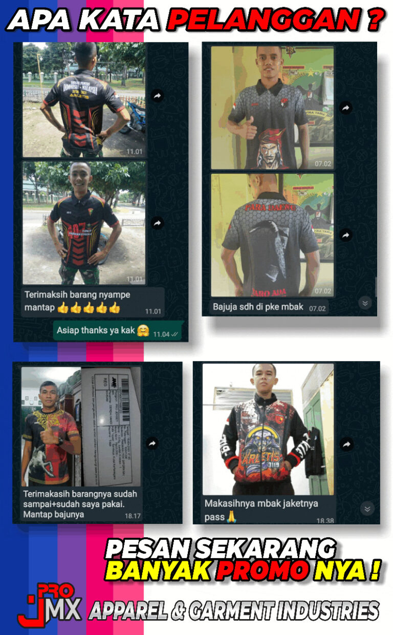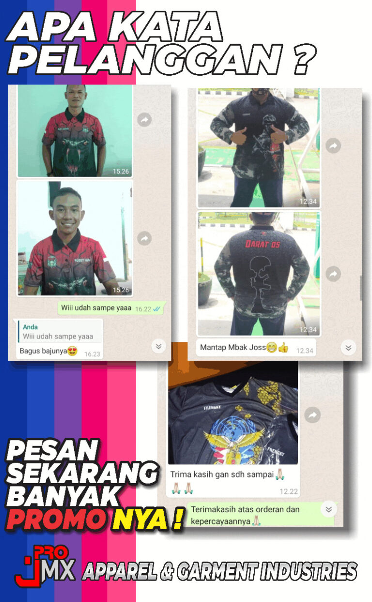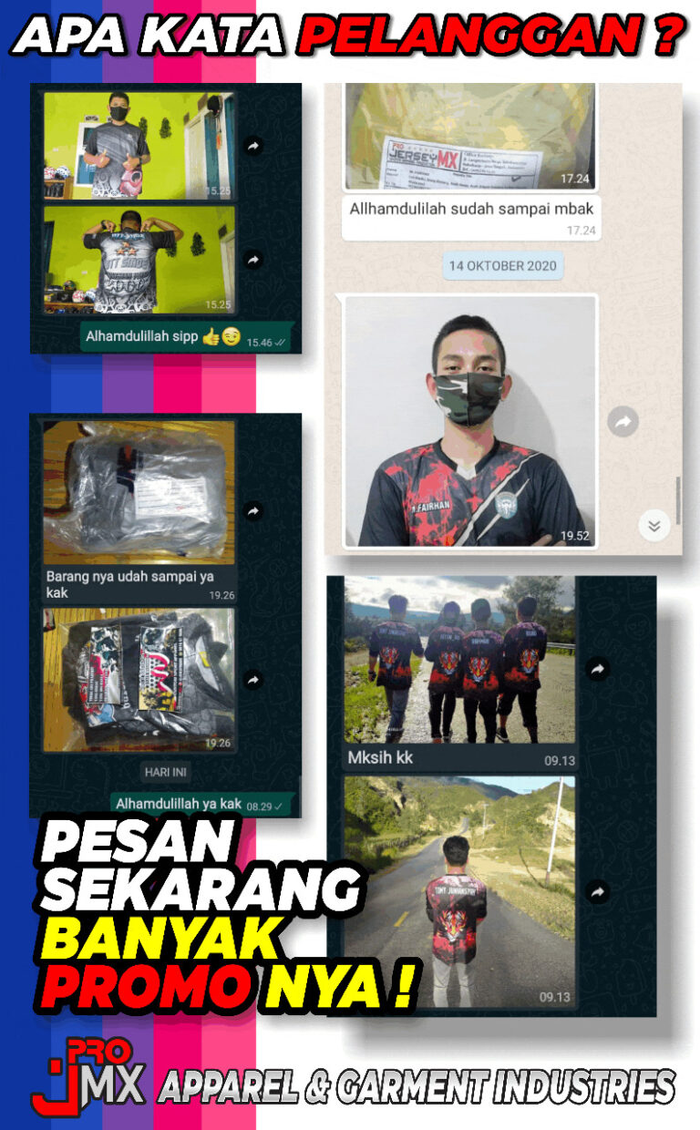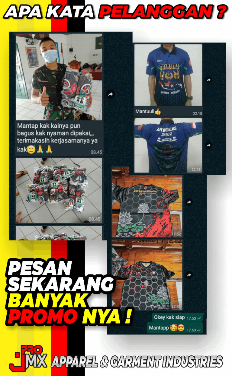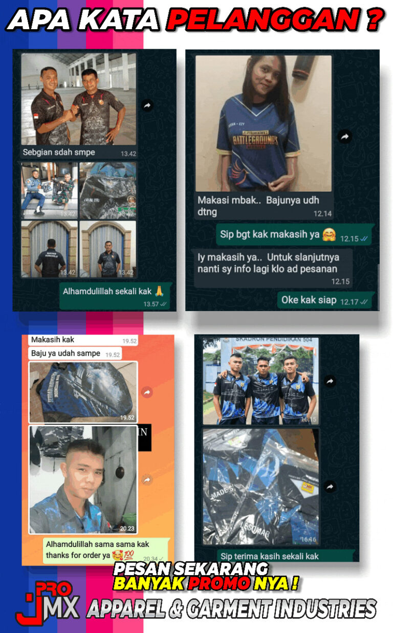 Semua proses pembuatan kaos jersey dilakukan di pabrik kami, mulai dari pembuatan design, cutting, printing, pressing, jahit hingga kirim barang